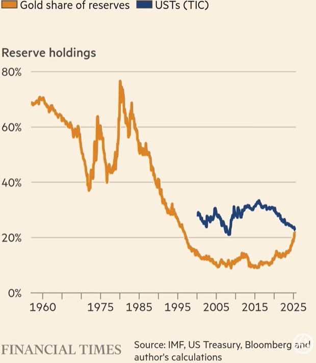 So for the last few years, China’s been doing something that hasn’t been done ever in modern history, which is to relink gold directly to its currency. So in simple terms, China wants to rebuild how money works. This is probably the most interesting story that you’re going to hear this year, and it caught my eye after watching a podcast by TFTC, and it blew my mind. Now, some people call this the debasement trade, but this is so much bigger than that. Here’s what’s happening. Over the last few years, the People’s Bank of China has been the biggest buyer of gold in the world. China and its allies, are buying gold and selling treasury bonds in order to damage the dollar’s reserve currency status. And at the same time that they’ve been buying gold. China’s also built something called the Shanghai Gold Exchange, which is already the biggest physical gold marketplace in the world. They just opened a new vault in Hong Kong, and they’re building what’s called the gold corridor, which is this network of vaults across the bricks countries, and it will allow those countries that hold the yuan to trade them in for physical gold. That gives China’s currency something that the dollar lost a long, long time ago: TRUST! Because gold can’t be frozen, can’t be printed. It’s much harder to debase, and it can’t default the same way that treasuries and dollars can. And as of July 2025 of this year, gold has officially been reclassified to what’s called a Basil 3 tier 1 asset. That means it now counts the same as cash or treasuries on a bank’s balance sheet. So the theory is that the next step is that gold will be upgraded again to what’s called an HQLA, a highquality liquid asset. That one change is going to unlock gold’s full potential that will let countries use it for something called repo and financing which is the foundation of the entire financial system. China has been systematically solving all the problems that countries had with using their currency. This is a theory of what’s about to happen to the world. There’s a parallel financial system that’s being built right now to compete with dollars. This goldback strategy will allow China to build a way to lend and to trade and to develop outside the dollar and outside the West. So, I want to help explain what’s happening to gold right now and why, what China’s gold corridor actually is and how it works, and how it’s going to be used to fund the development across the entire world without ever touching the IMF. Before I get into how China is rebuilding the entire financial system, I want to explain the bird’s eyee view of why the world is even looking at an alternative in the first place. And it really comes down to the idea of trust. The trust that countries used to have in dollars. For example, around 70% of all the global reserves were once stored in US dollars. In other words, countries held their wealth in US treasuries, bonds, right? Because they were considered to be the safest assets on Earth. But then that started to change sometime in 2022 because that’s when the United States froze about $300 billion worth of Russia’s foreign reserves. Now, regardless of how you feel about that politically, what it showed to the rest of the world was if your reserves are held in dollars, they’re not really yours to begin with. They can be seized, they can be locked, and we can just turn it off with a click of a button. So, countries are like, “Okay, I have a question: <“if you can do that to a nuclear power like Russia, what happens then if we disagree with you next?” So that’s why this change started to accelerate because there was this loss of trust for paper assets. Central banks around the world especially in what are called emerging markets started to lower their exposure to US assets and they started selling off their treasuries and they started buying gold instead. Slowly at first but then faster and faster. Check this out.
